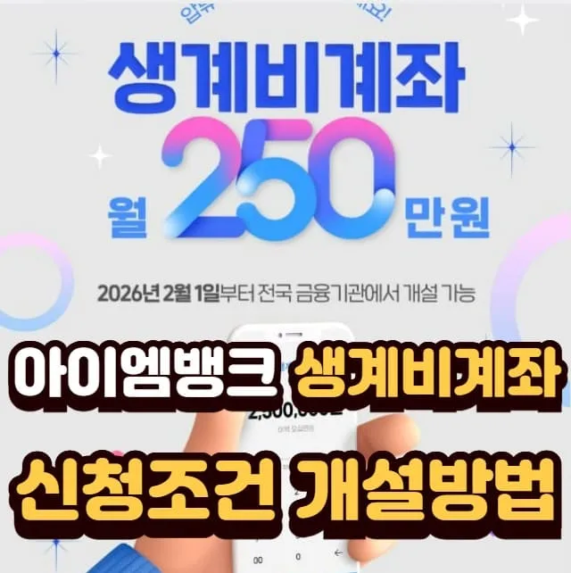 이러한 현실을 반영해 2026년 2월 2일, iM뱅크(구 대구은행)에서 ‘iM생계비계좌’를 출시했습니다. 이 계좌는 채무나 압류 상황에서도 월 최대 250만 원까지 생활비를 법적으로 보호해 주는 압류방지 전용 계좌입니다.